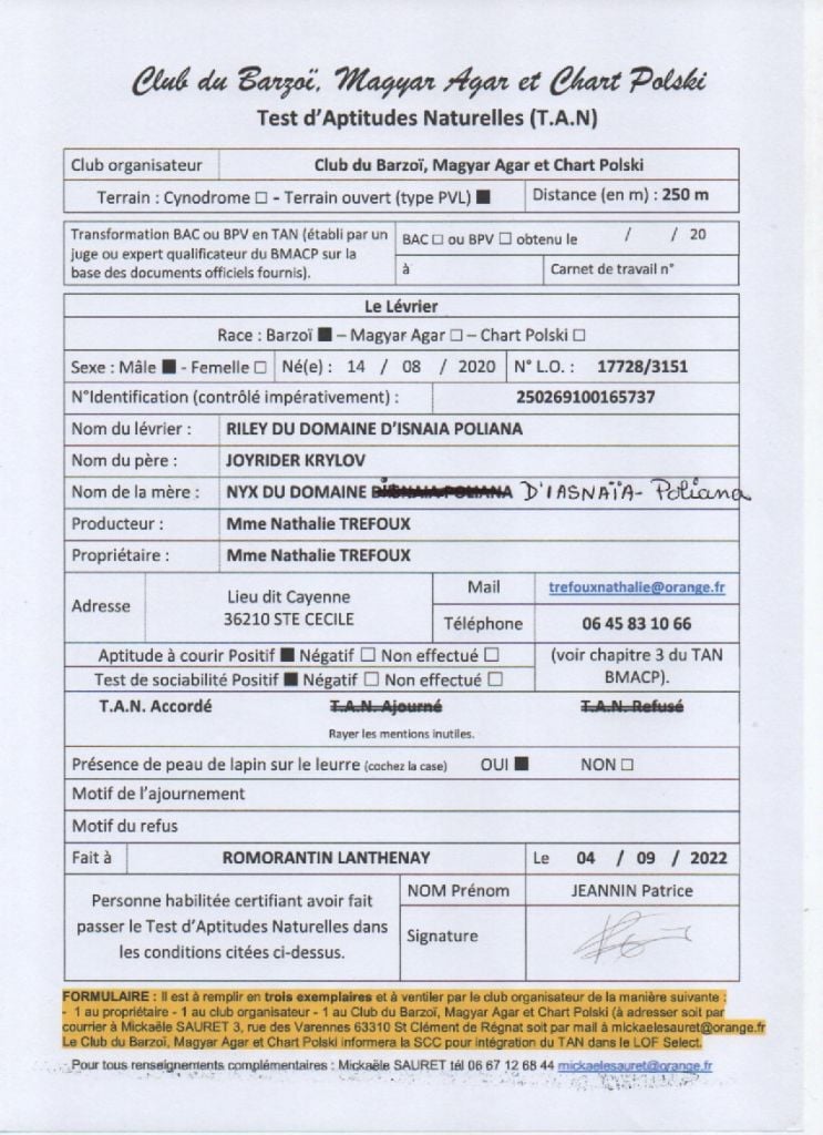 passage de TAN National d'élevage 2022